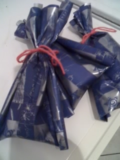 これは近所に住む友人と、そのお子さん達二人に渡そうと思って超簡単に包んだもの。。。
