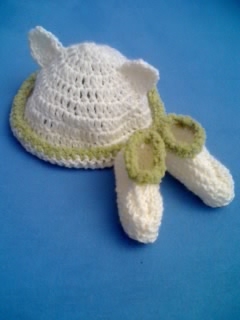 ニット帽子に黄緑色のふわふわ毛糸でふちどりしてみました